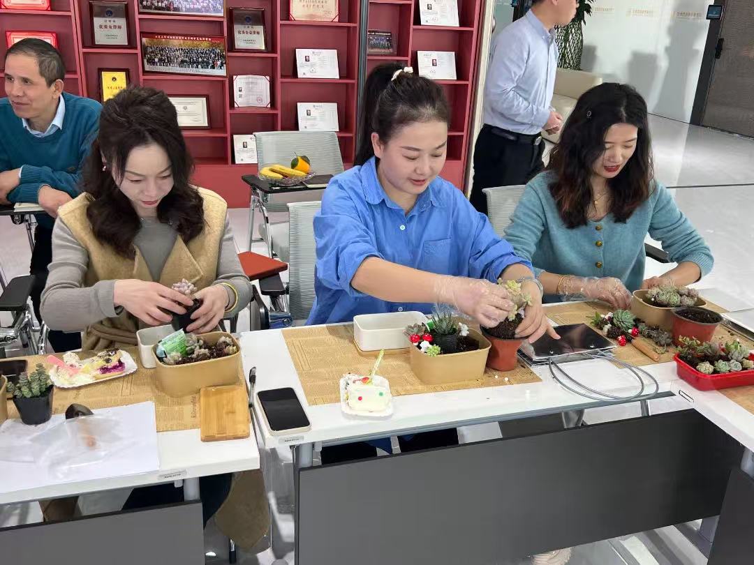 作为活动压轴环节,我所特别策划“春日多肉花园”女神节主题活动。全所女性律师化身“创意园丁”,在“老师”指导下完成多肉盆栽设计与种植。从搭配品种到装饰微景观,女神们各展巧思,现场涌现出风格各异的作品。