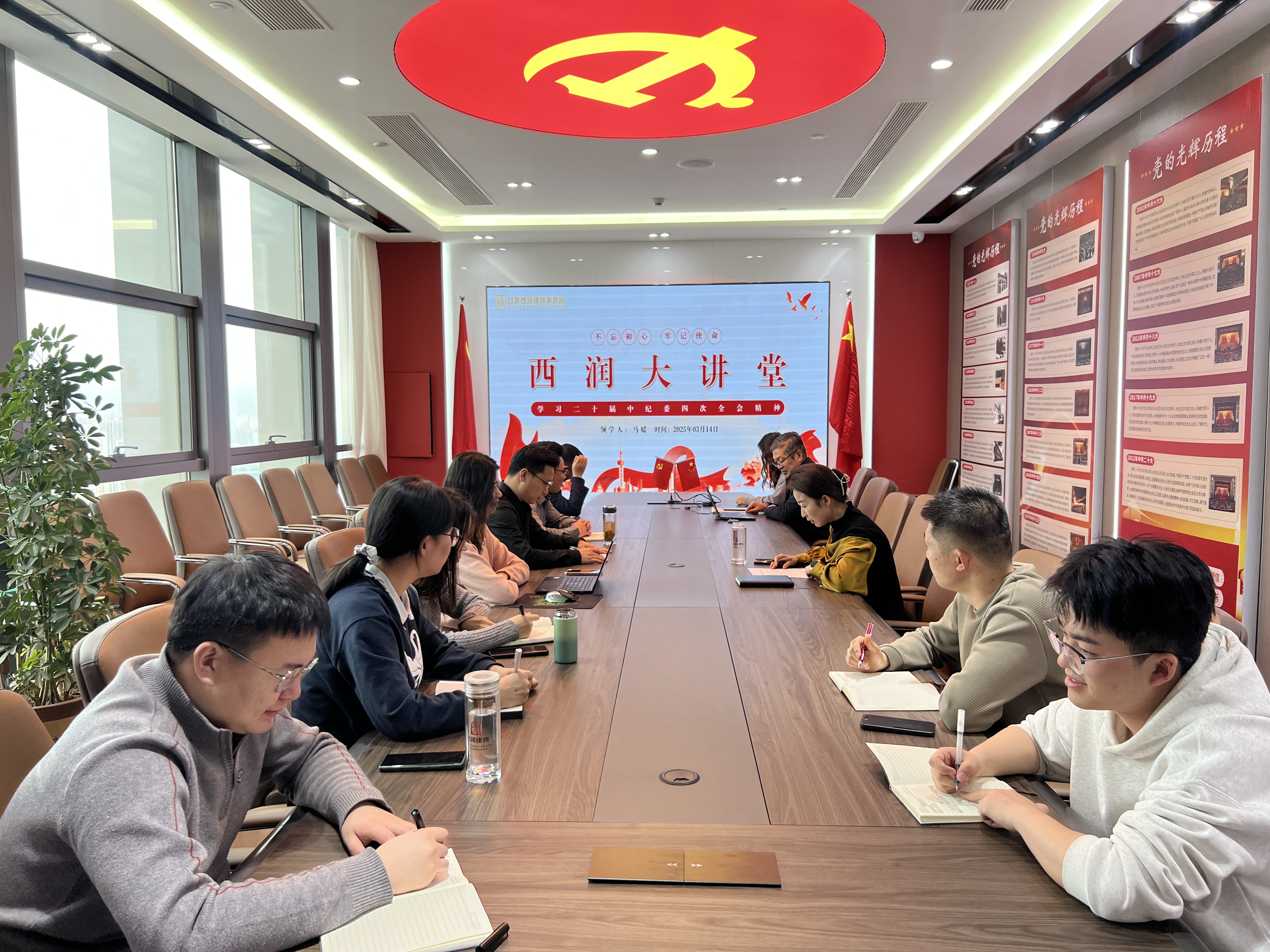 2025年3月14日,甘肃西润律师事务所组织全体人员召开专题学习会议,深入学习贯彻二十届中央纪委四次全会精神。会议由合伙人马媛律师领学,结合行业发展要求和律所工作实际,对全会精神进行了系统解读,并就深化党风廉政建设、规范执业行为作出部署。