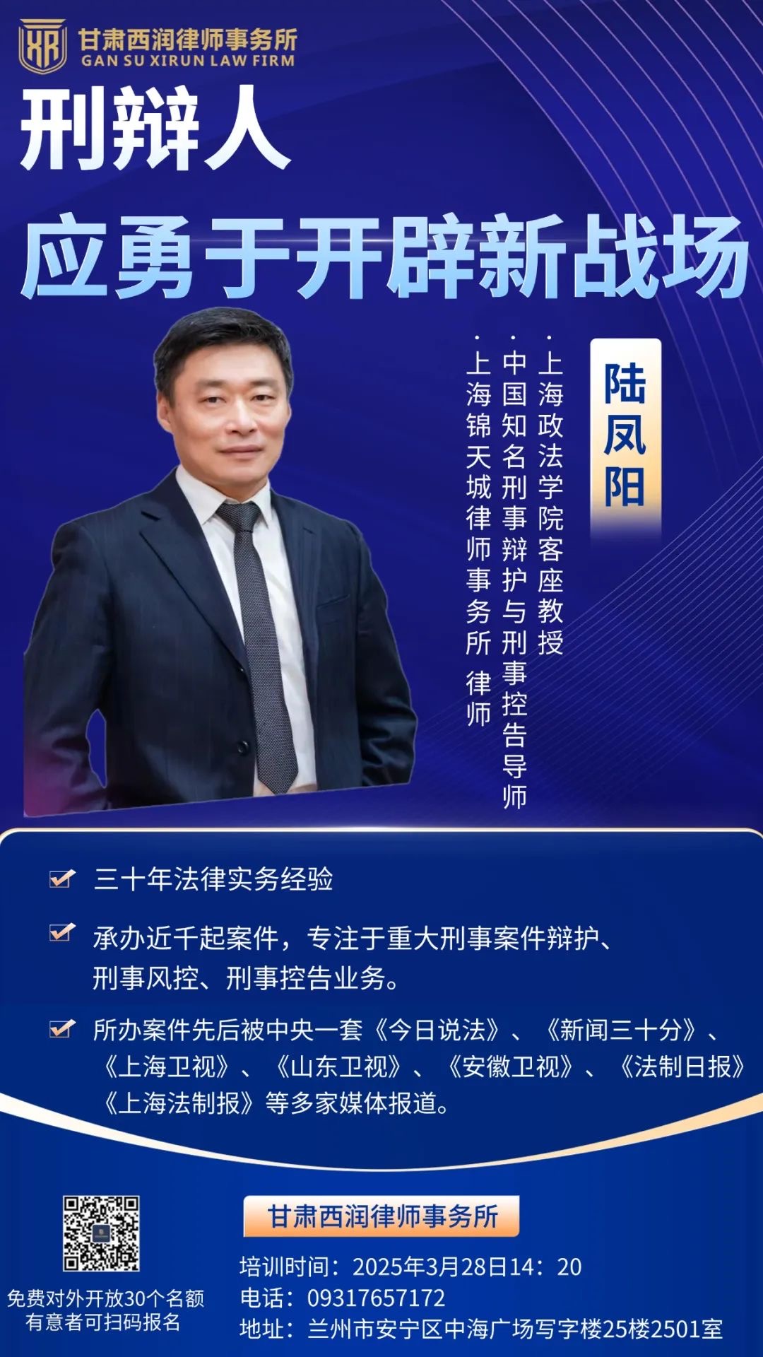 西润动态 | 本周五3月28日下午西润大讲堂开讲:刑辩人应勇于开辟新战场!