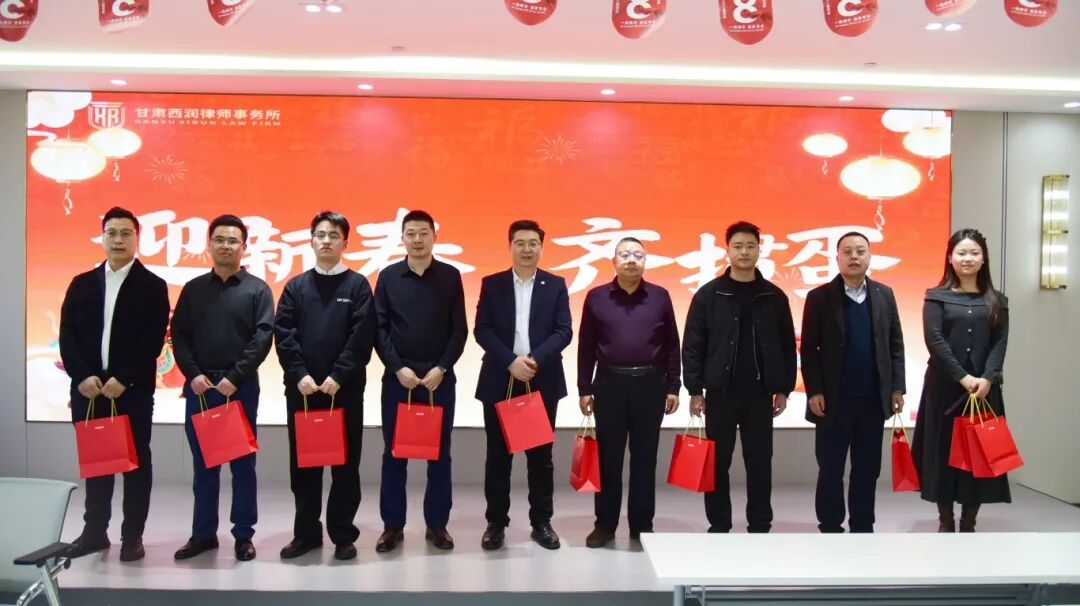 表彰结束后,律所为全体同仁送上精心准备的新春大礼包,一份份礼品承载着律所的关怀与祝福,让现场氛围愈发暖意融融、温情满满。随后,全体参会人员齐聚一堂拍摄大合影,定格下这一同心奋进、温暖相伴的珍贵瞬间,也定格下对未来的美好期许。